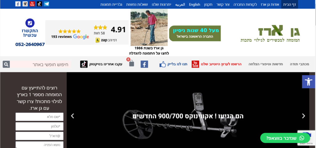 תחזוקת אתר גן ארז גלאי מתכות שינוי תוכן ודפים